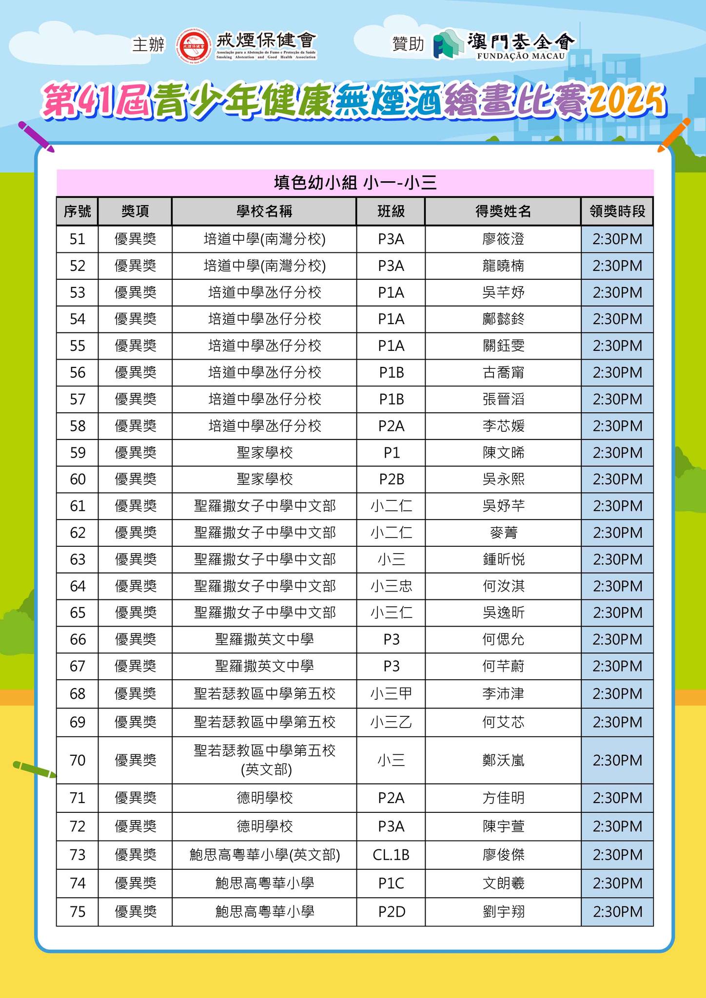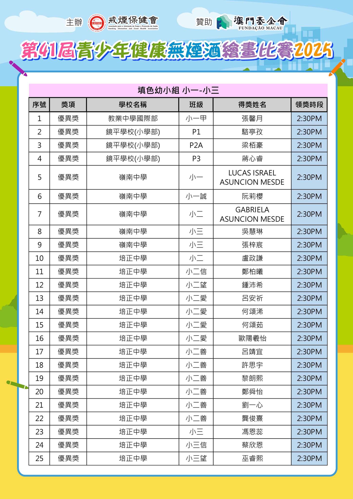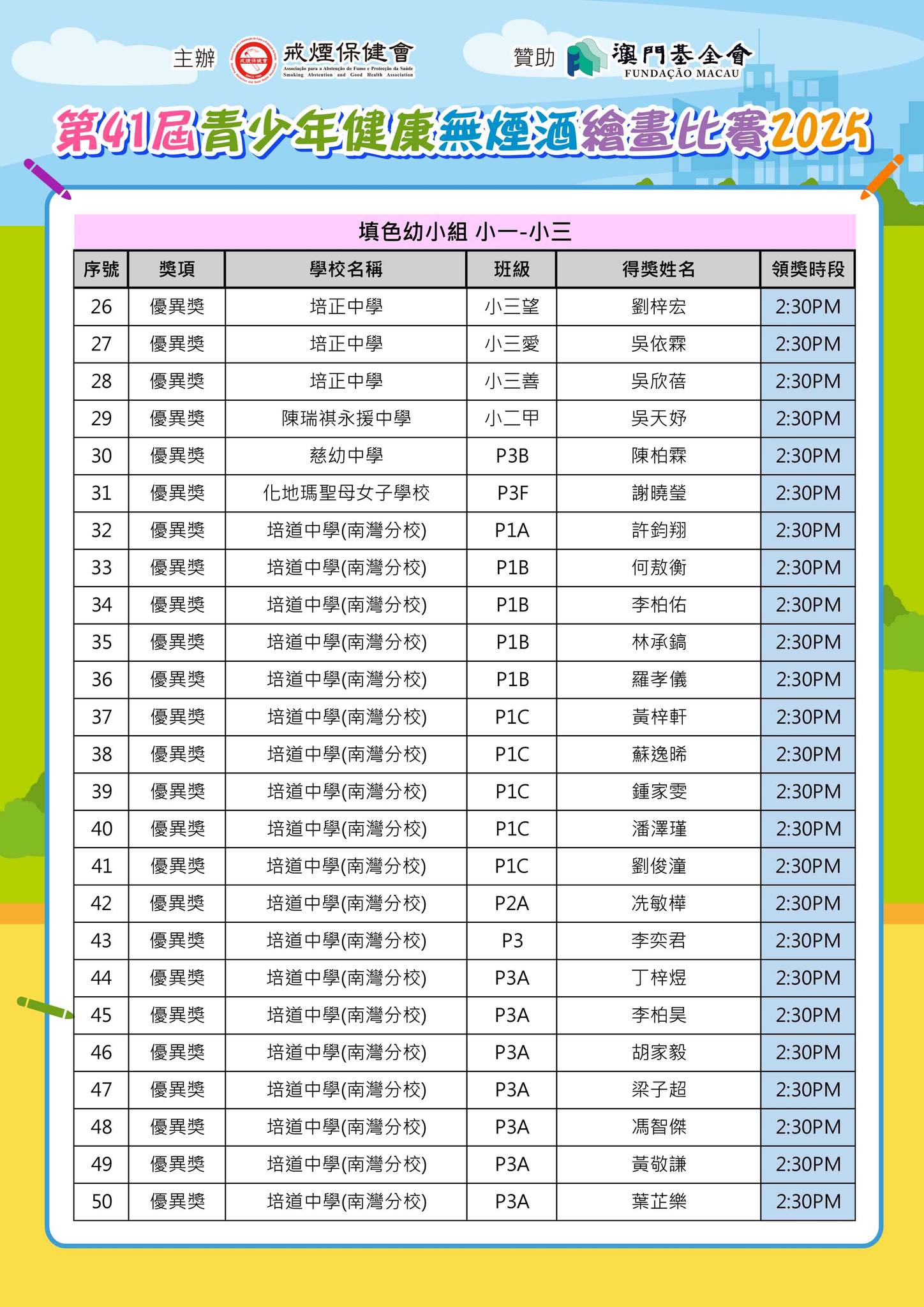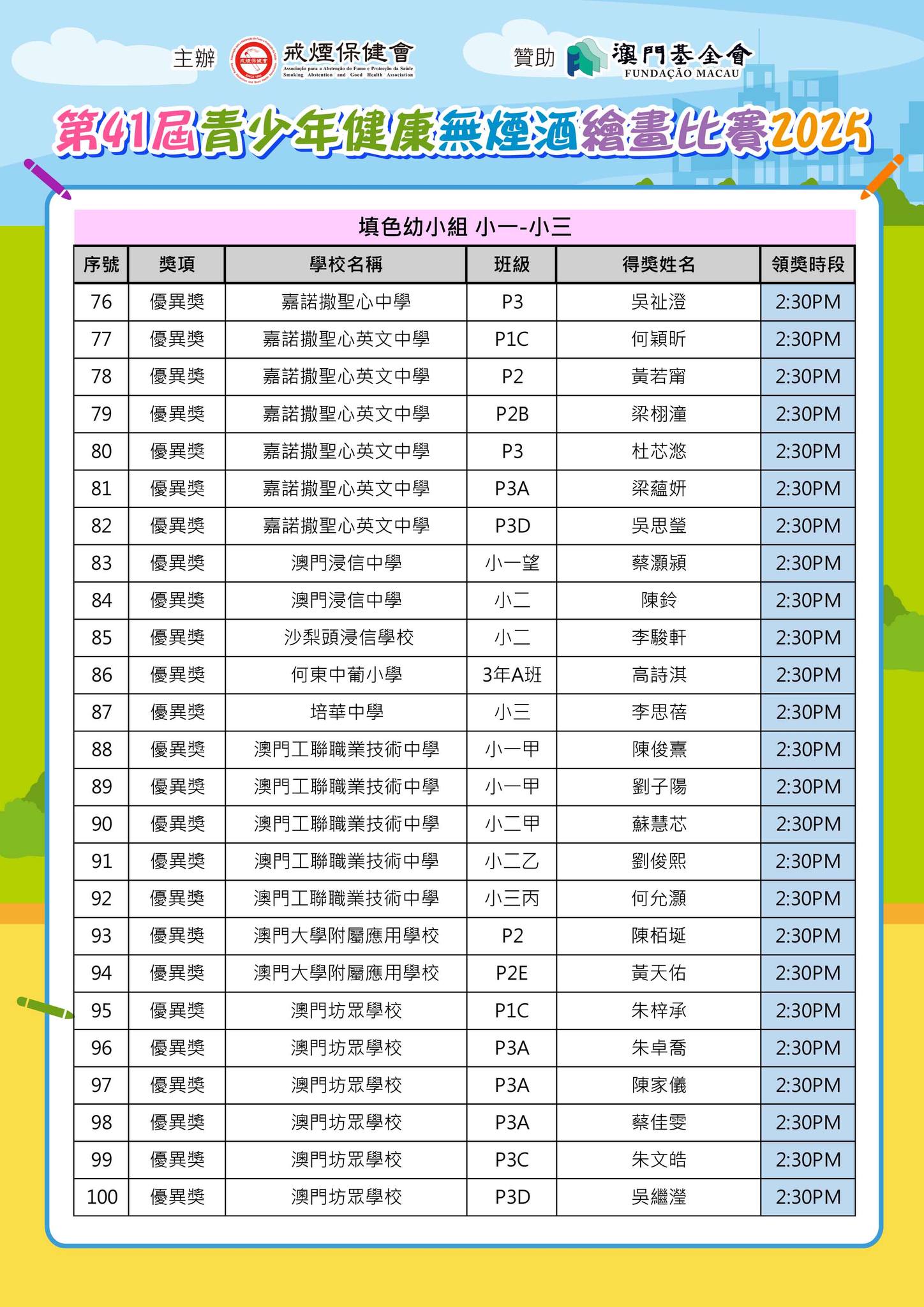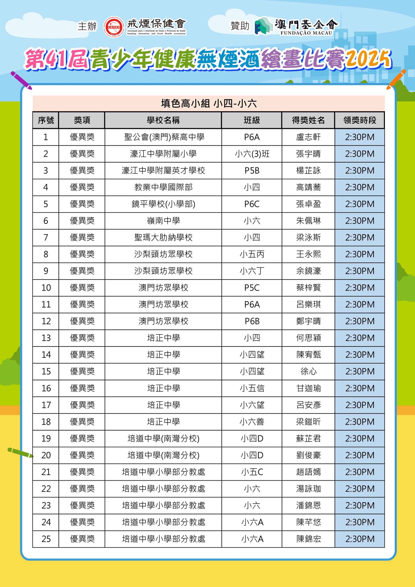 「第41屆青少年健康無煙酒繪畫比賽2025」--得獎名單公佈及舉行頒獎典禮