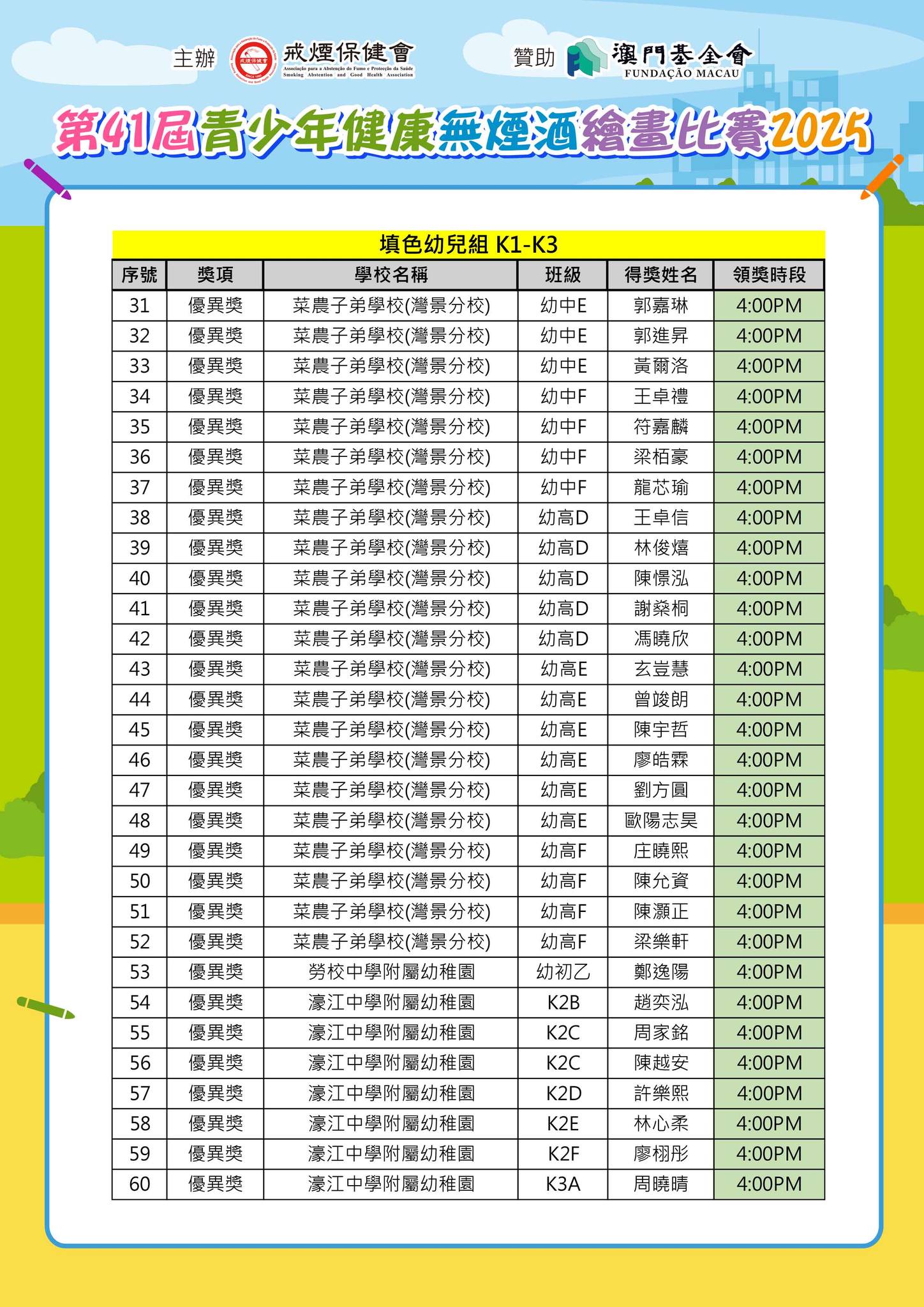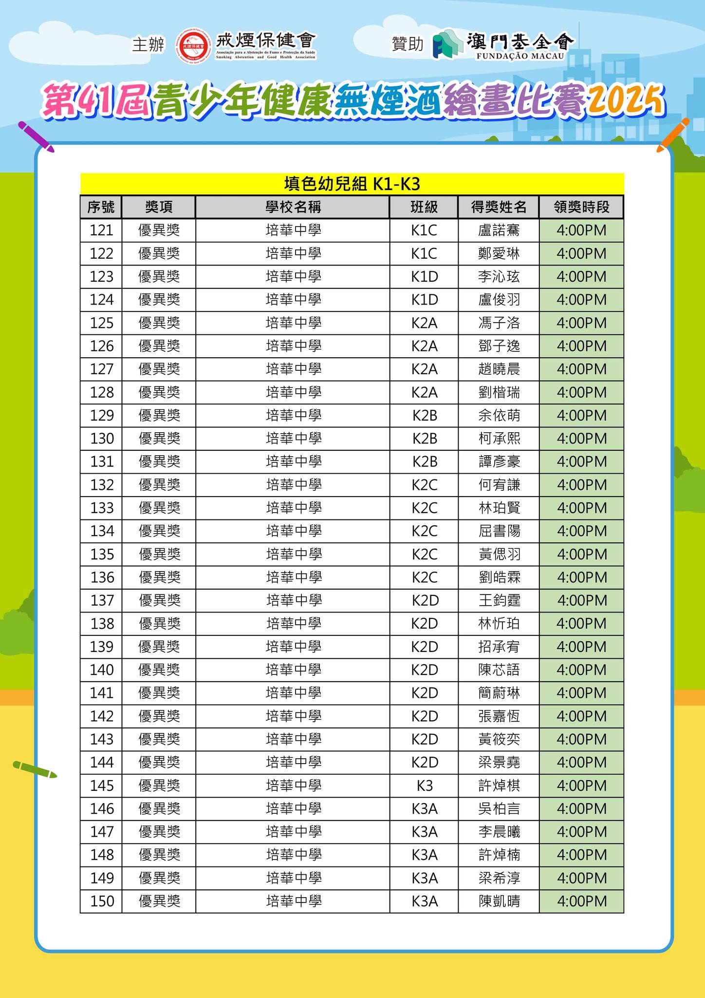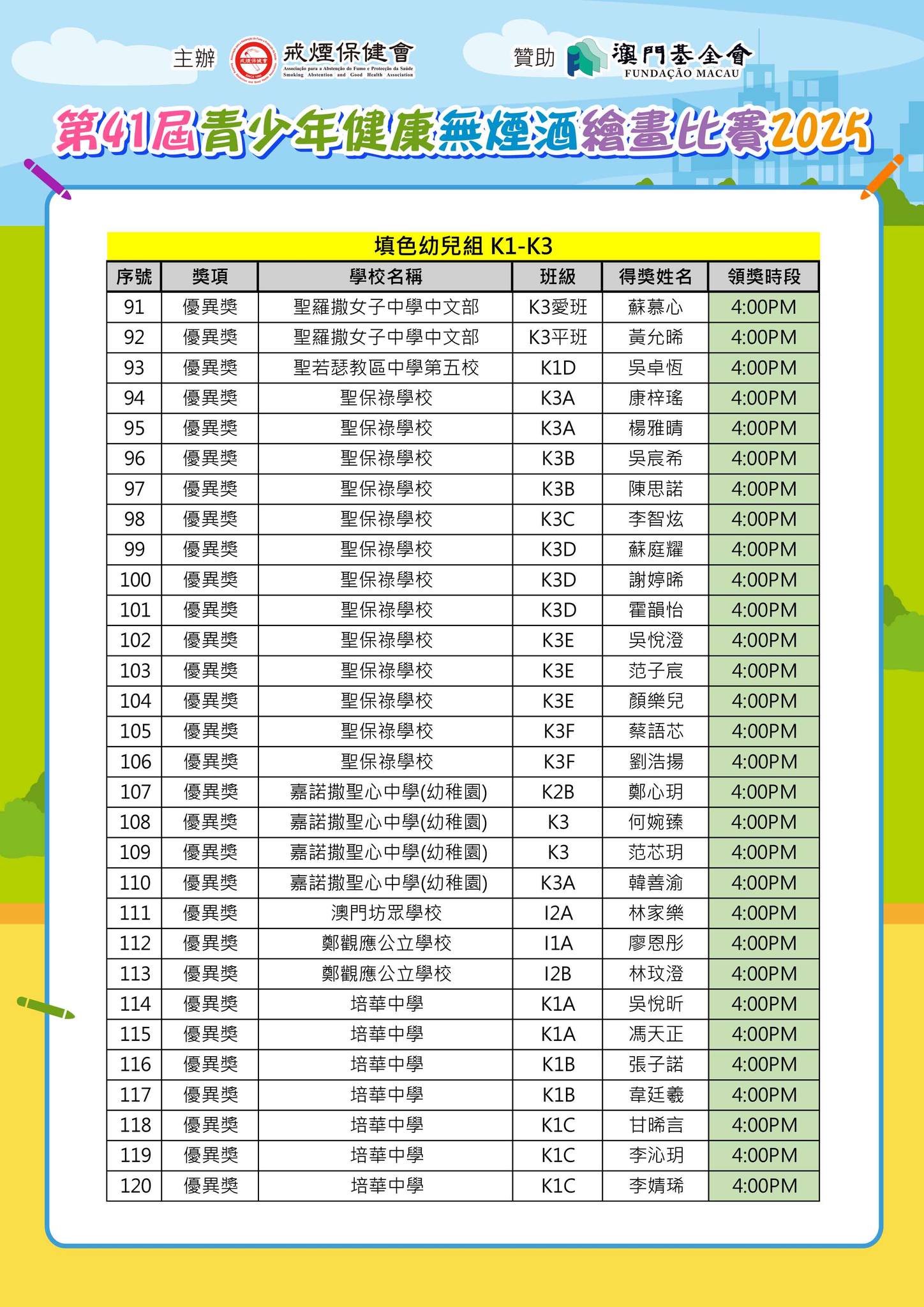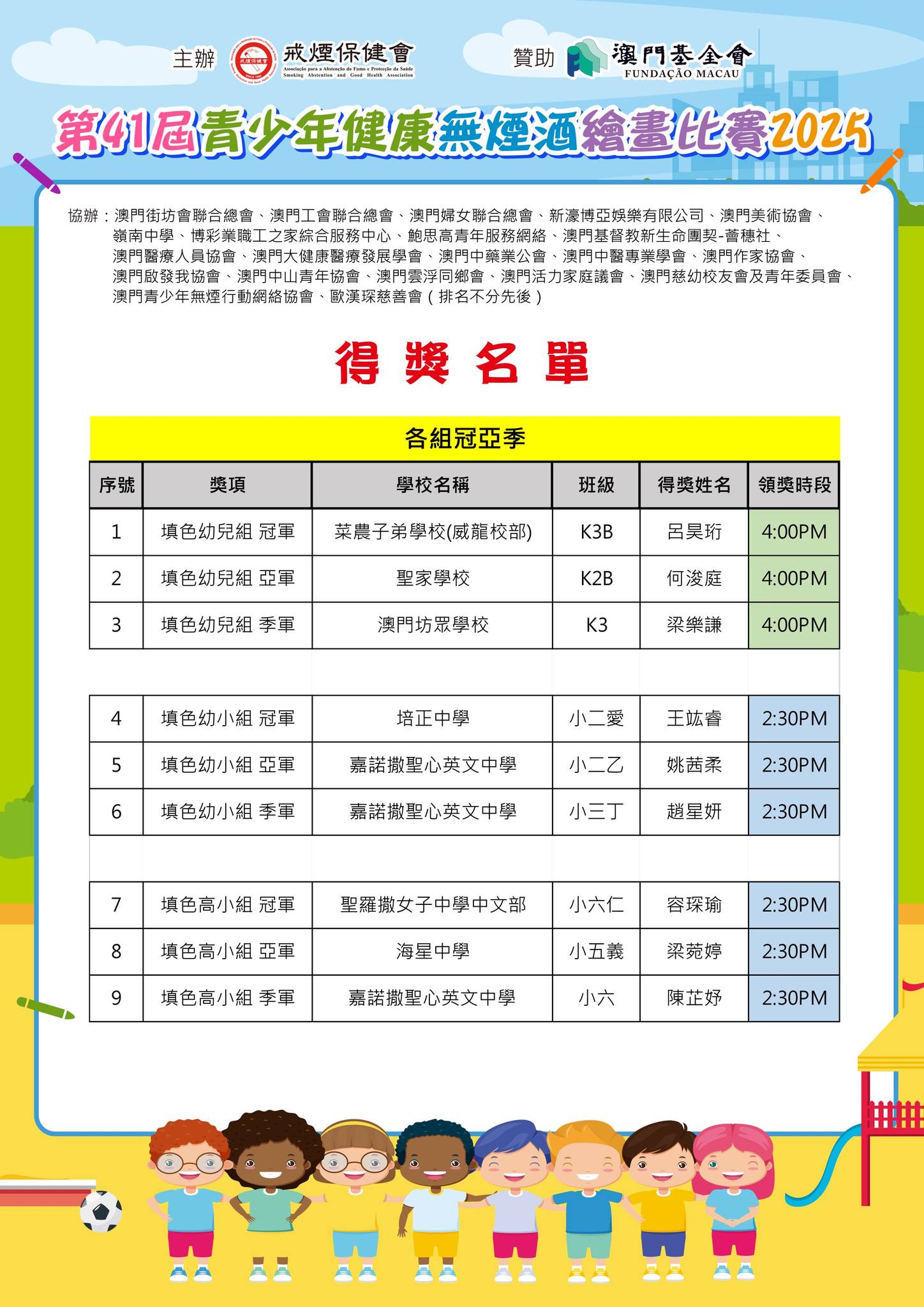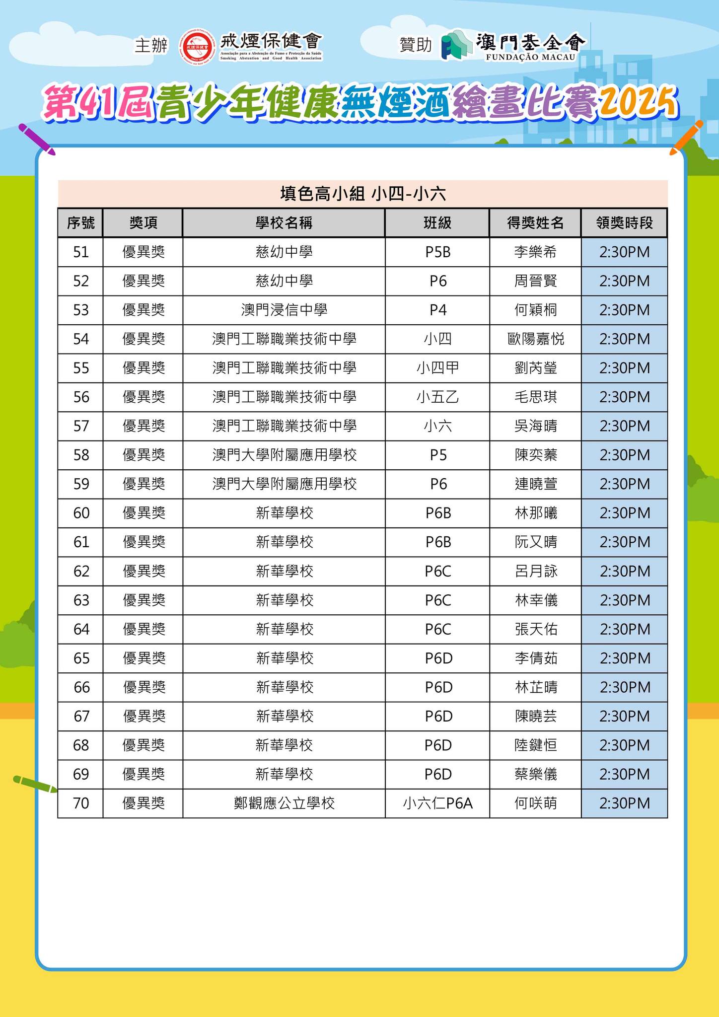 「第41屆青少年健康無煙酒繪畫比賽2025」--得獎名單公佈及舉行頒獎典禮