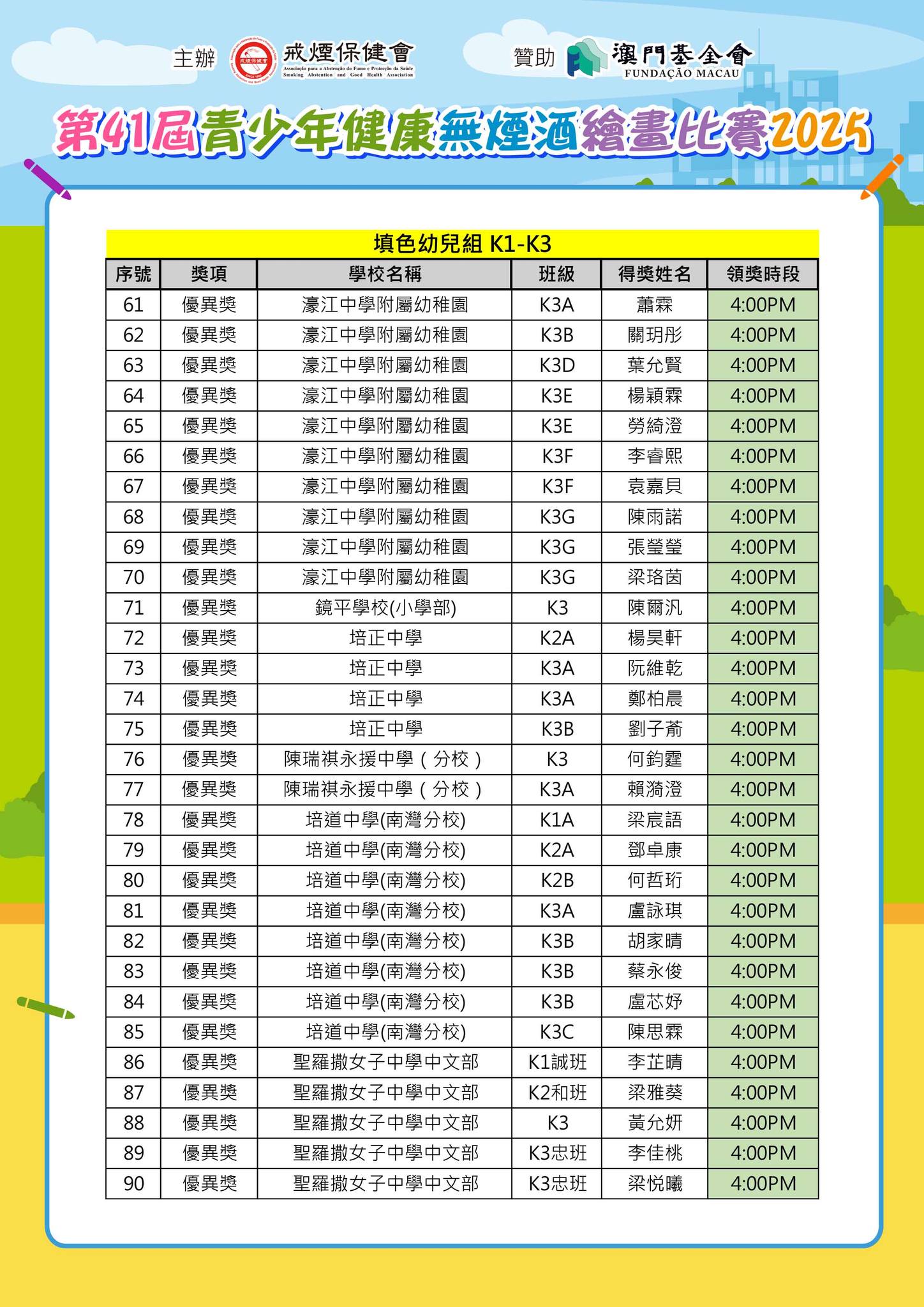 "第41屆青少年健康“無煙酒”繪畫比賽2025活動"得獎名單公佈