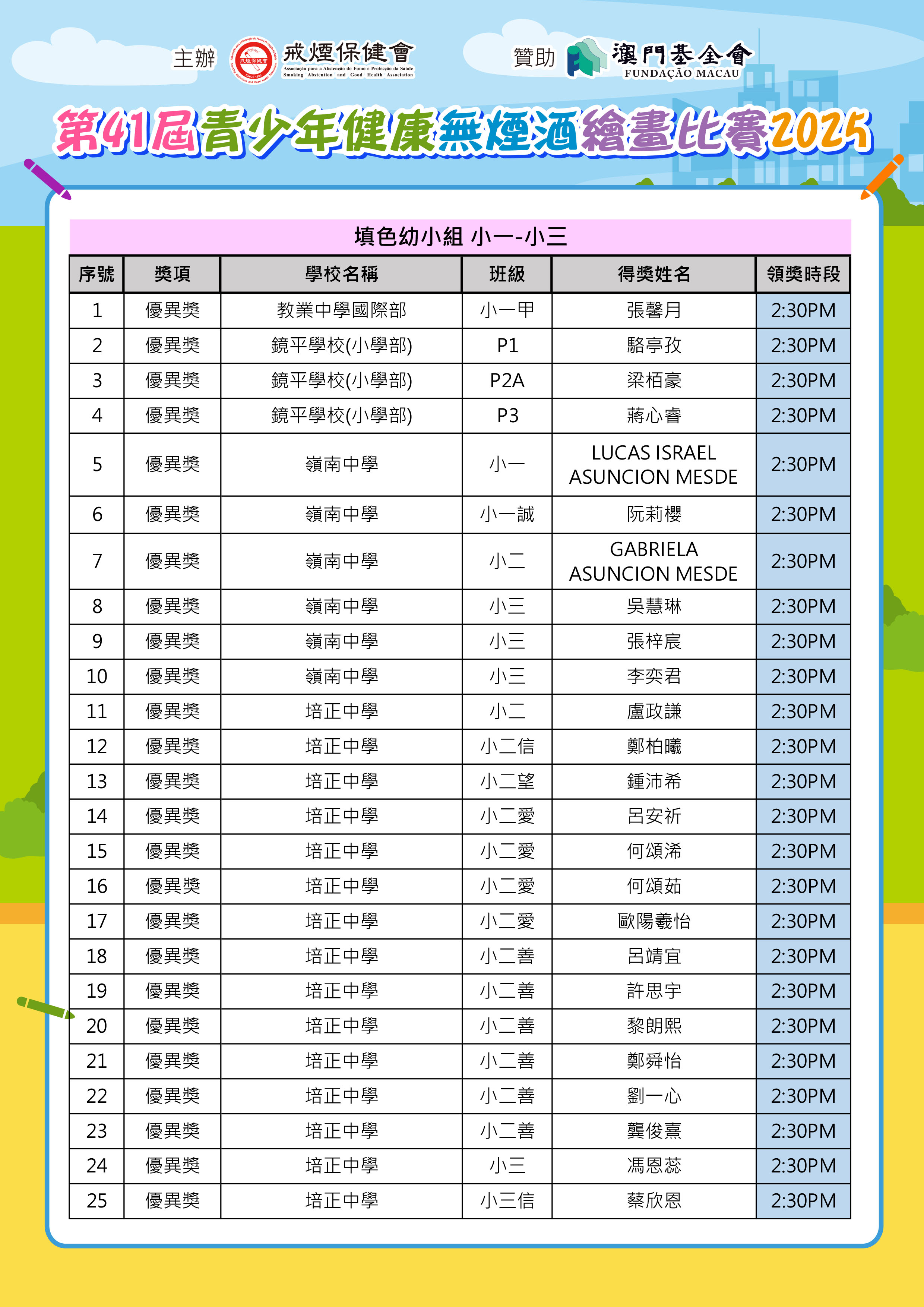 「第41屆青少年健康無煙酒繪畫比賽2025」--得獎名單公佈及舉行頒獎典禮