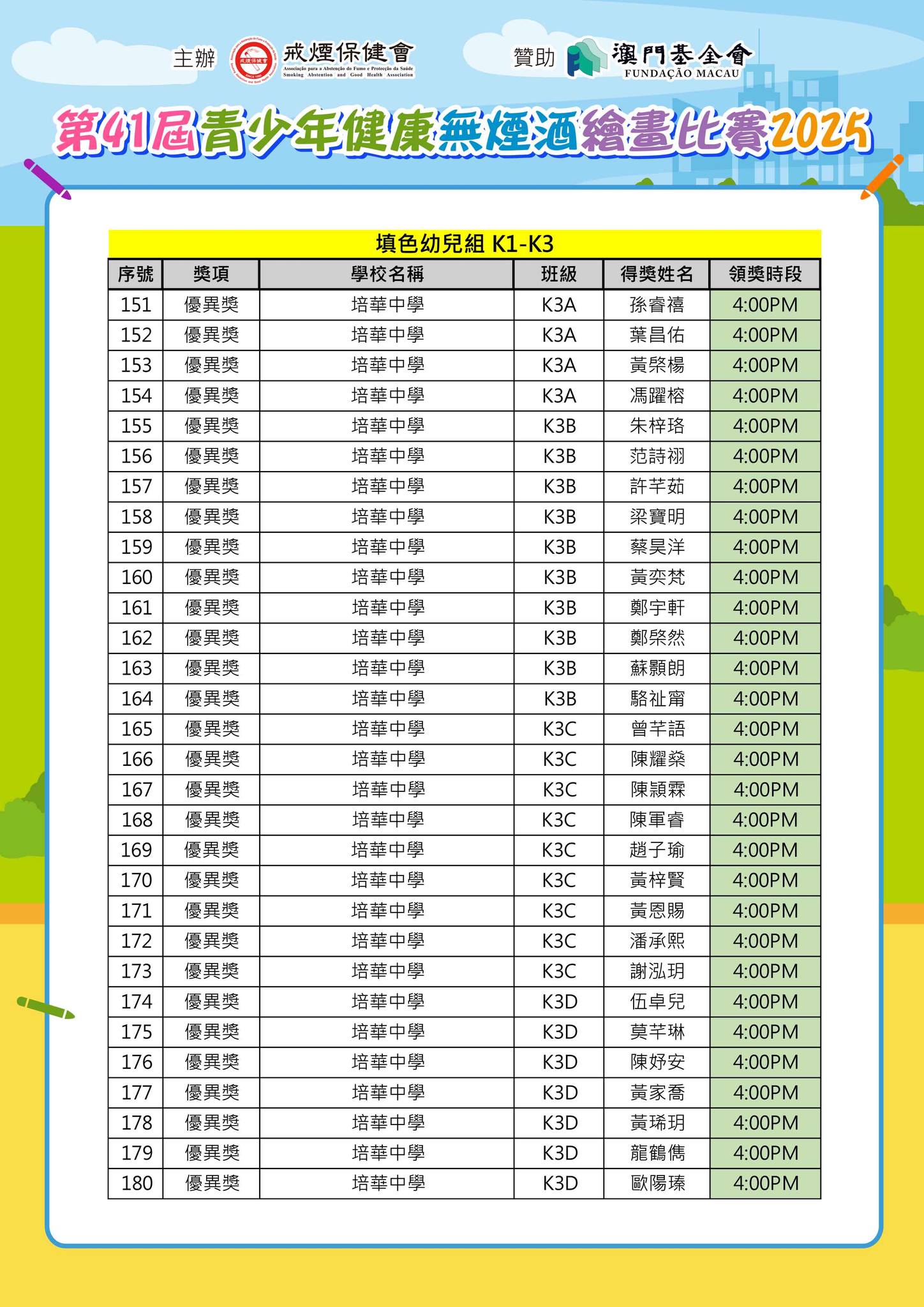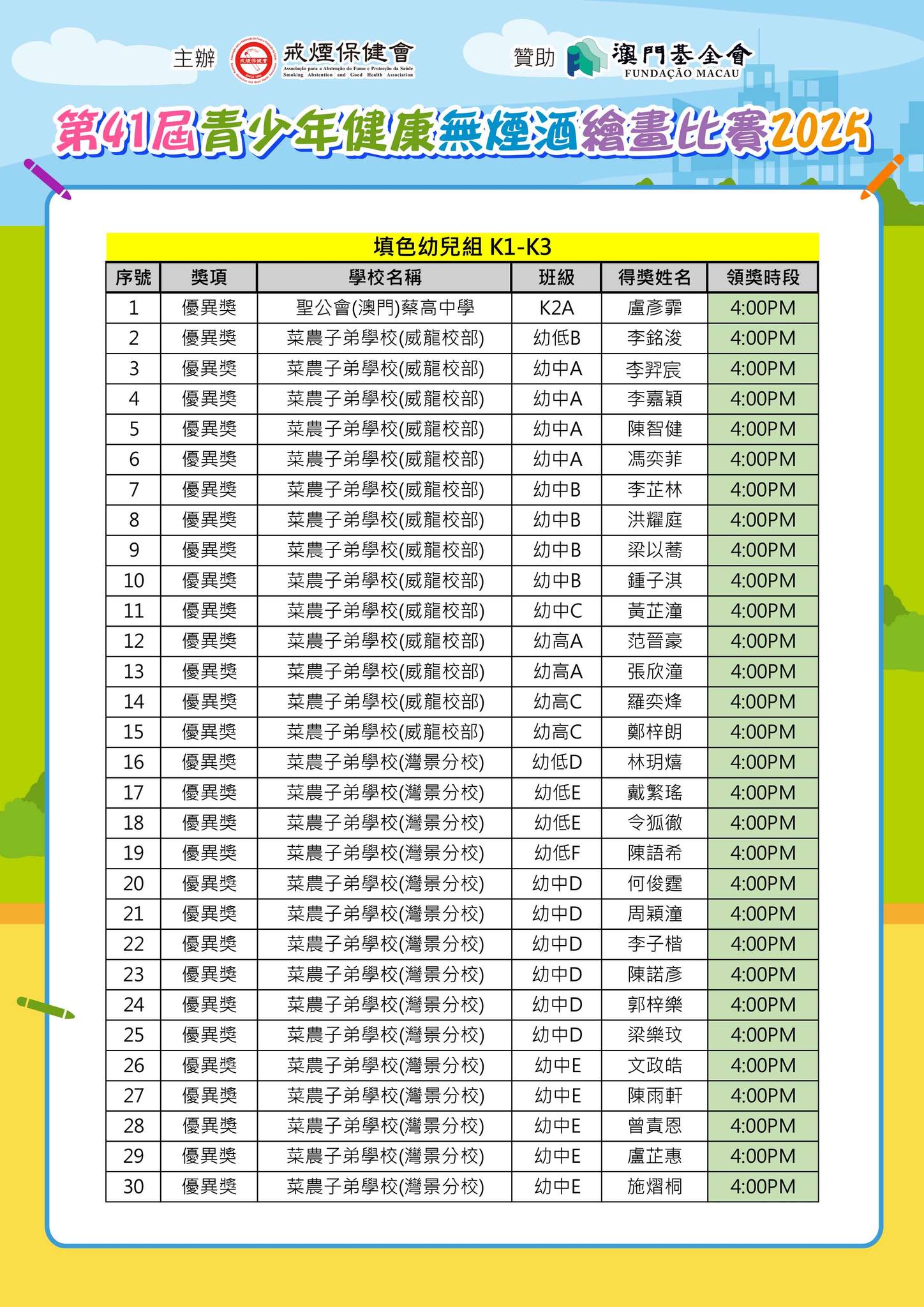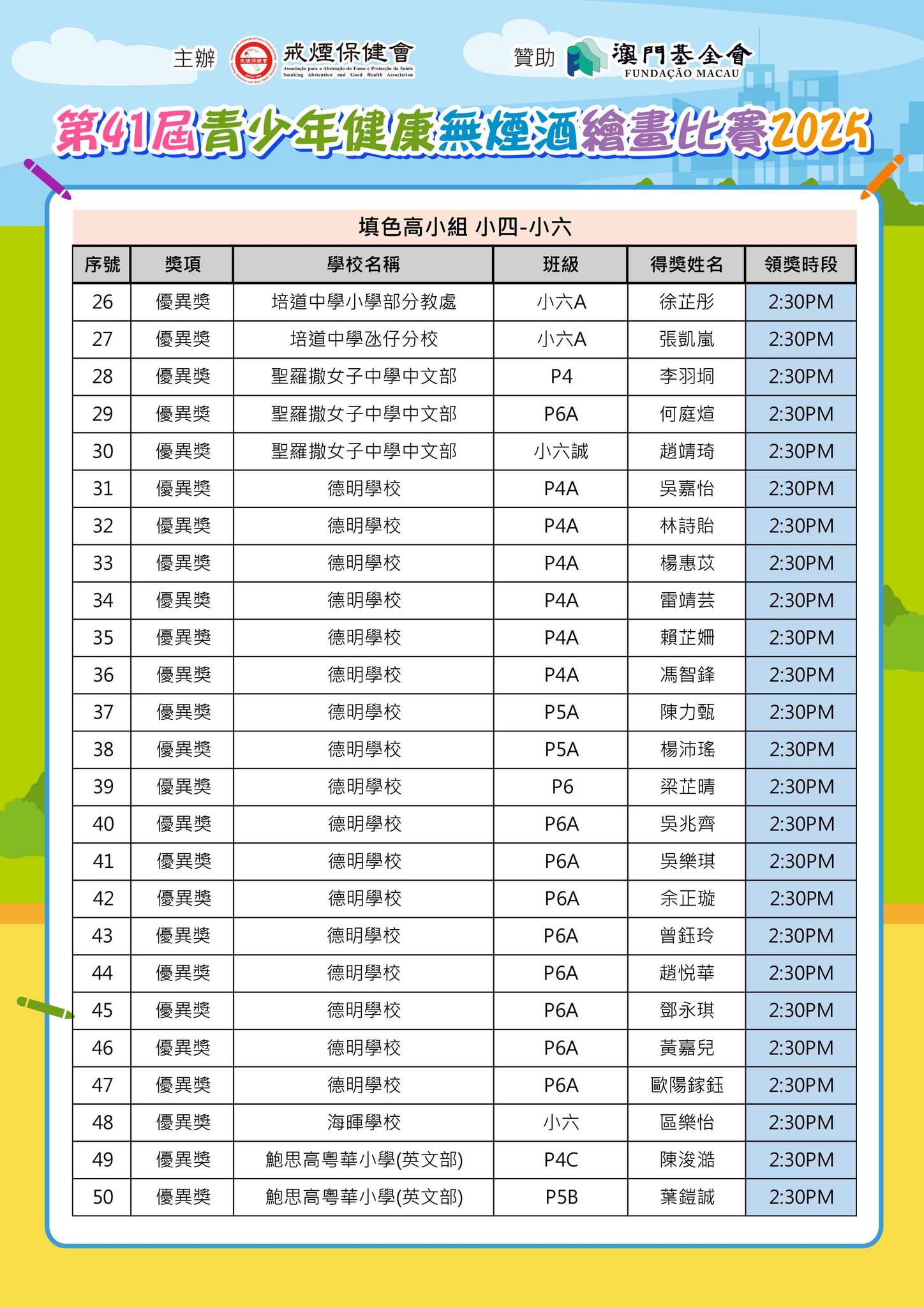 「第41屆青少年健康無煙酒繪畫比賽2025」--得獎名單公佈及舉行頒獎典禮